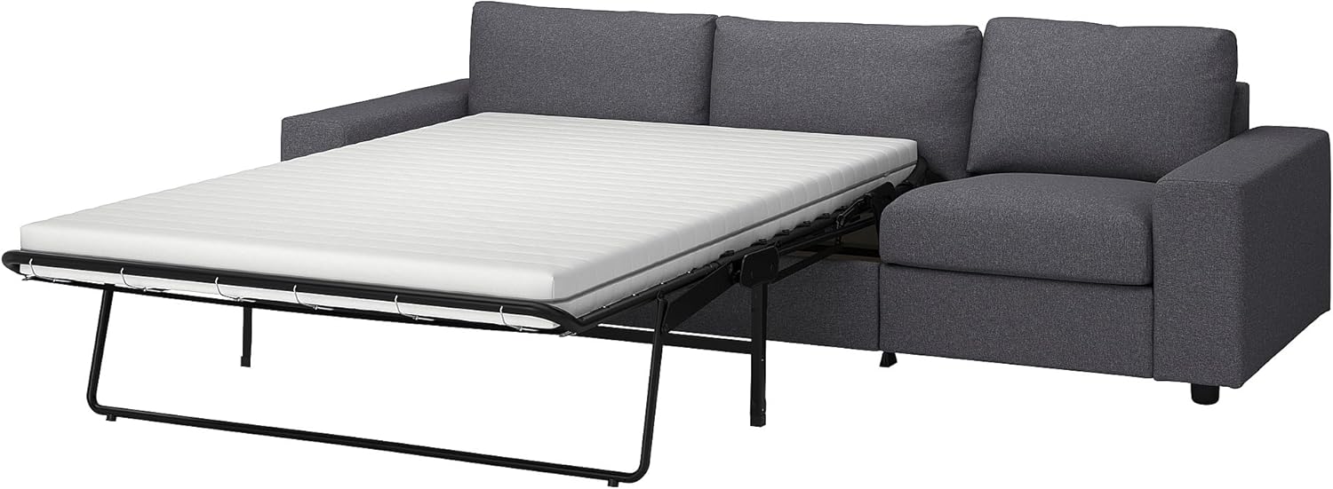 The VIMLE sofa-bed is designed for comfort and versatility, featuring high resilience foam cushions for excellent support and a durable construction that converts easily from a sofa to a bed.